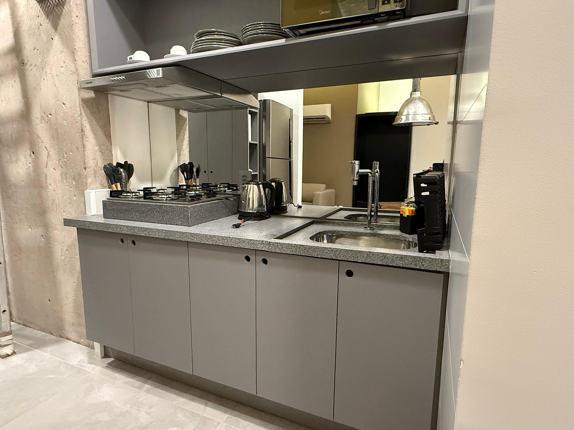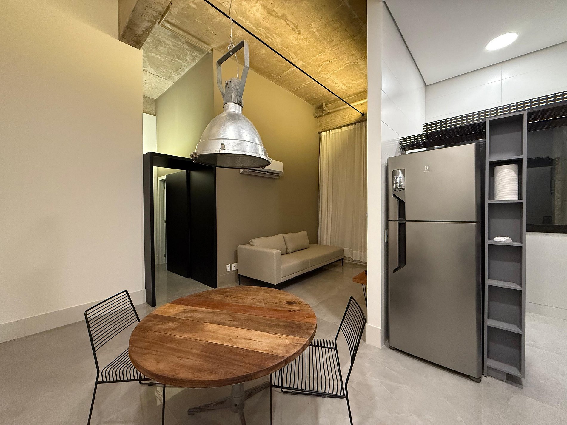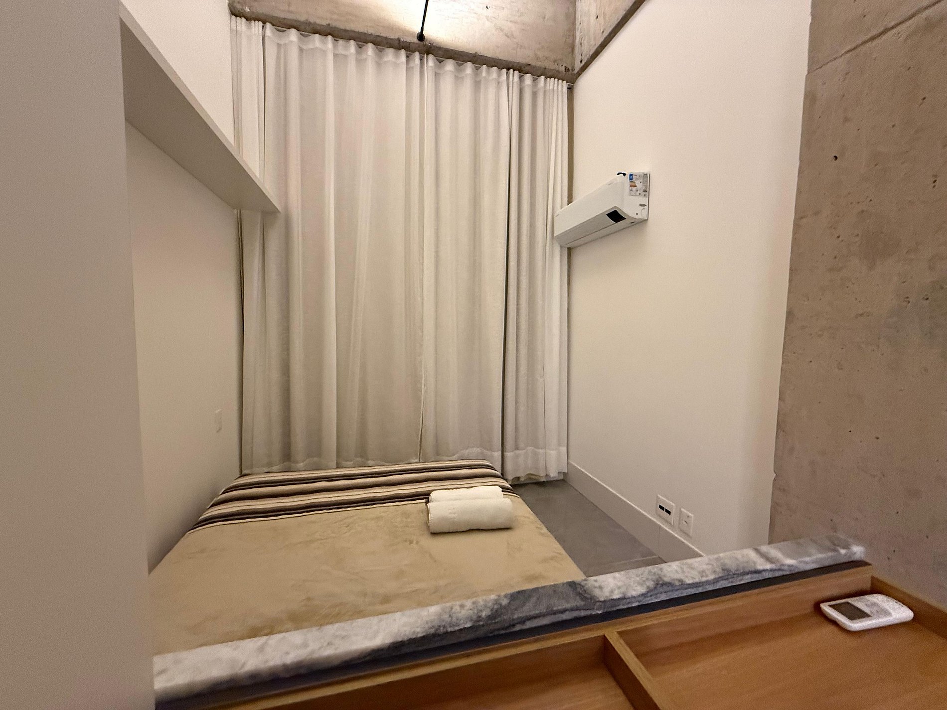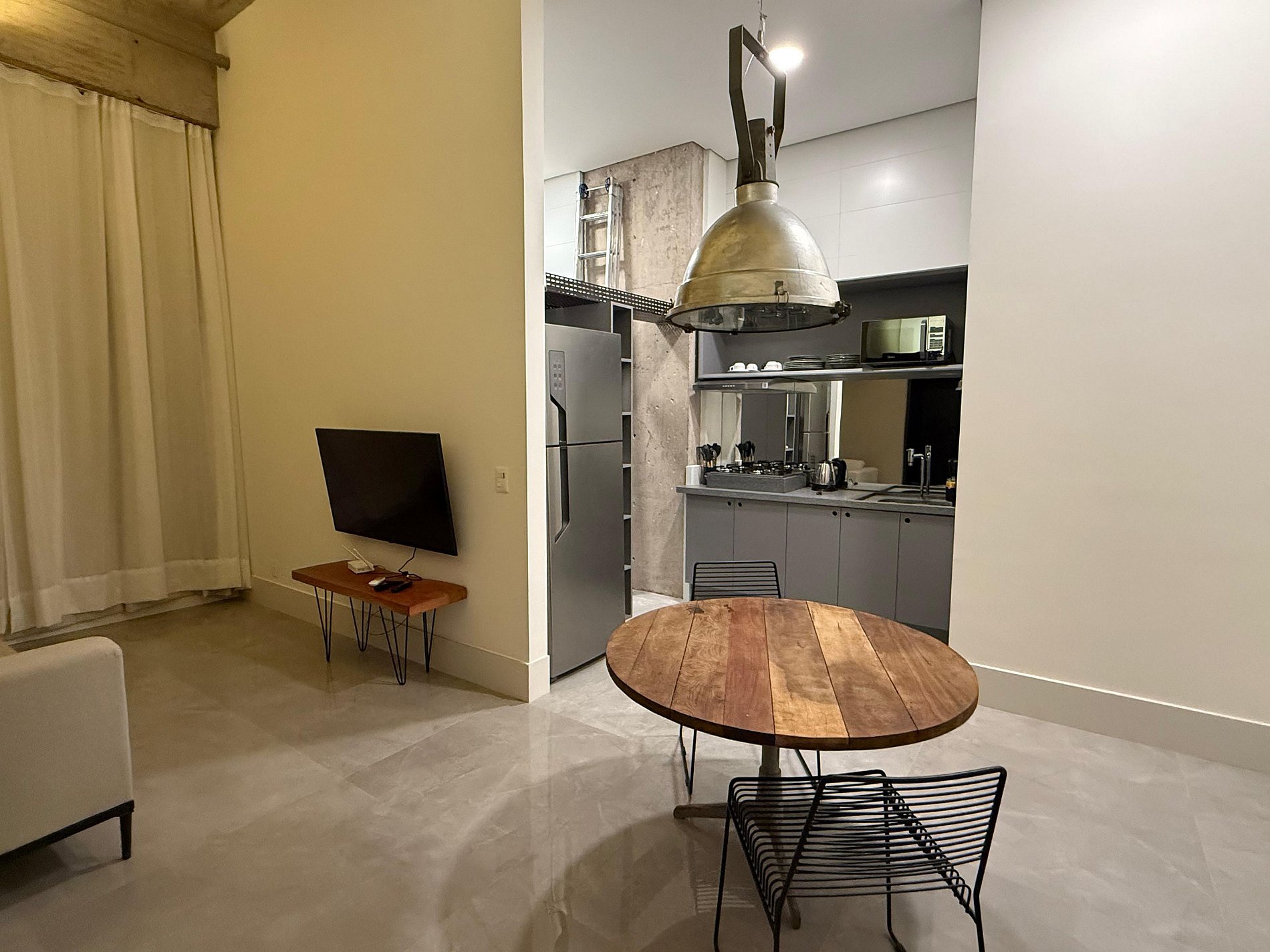 Desfrute de uma estadia acolhedora e inspiradora neste apartamento de 2 quartos, com pé direito duplo e decoração industrial minimalista. Cada detalhe – das peças autorais criadas por artistas locais à iluminação cuidadosamente planejada – foi pensado para aproximar você da essência de Brasília, revelando sua estética, arte, cultura e natureza.