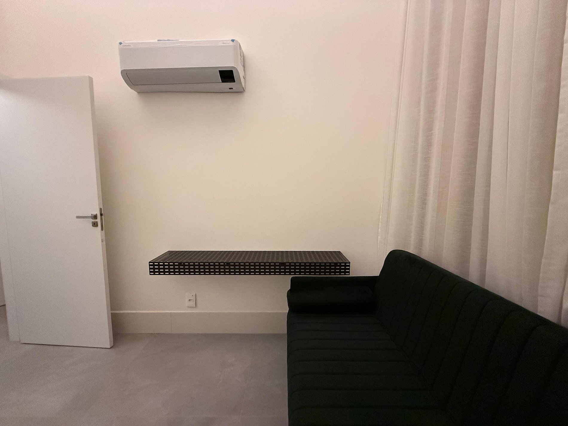 • 1 quarto com sofá-cama tamanho casal, mesa de trabalho, ar condicionado e ventilação natural;