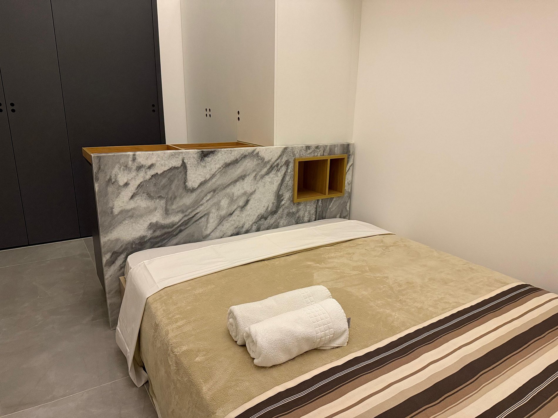 • 1 suíte com cama queen-size, janela ampla com boa iluminação, ar condicionado e ventilação natural;